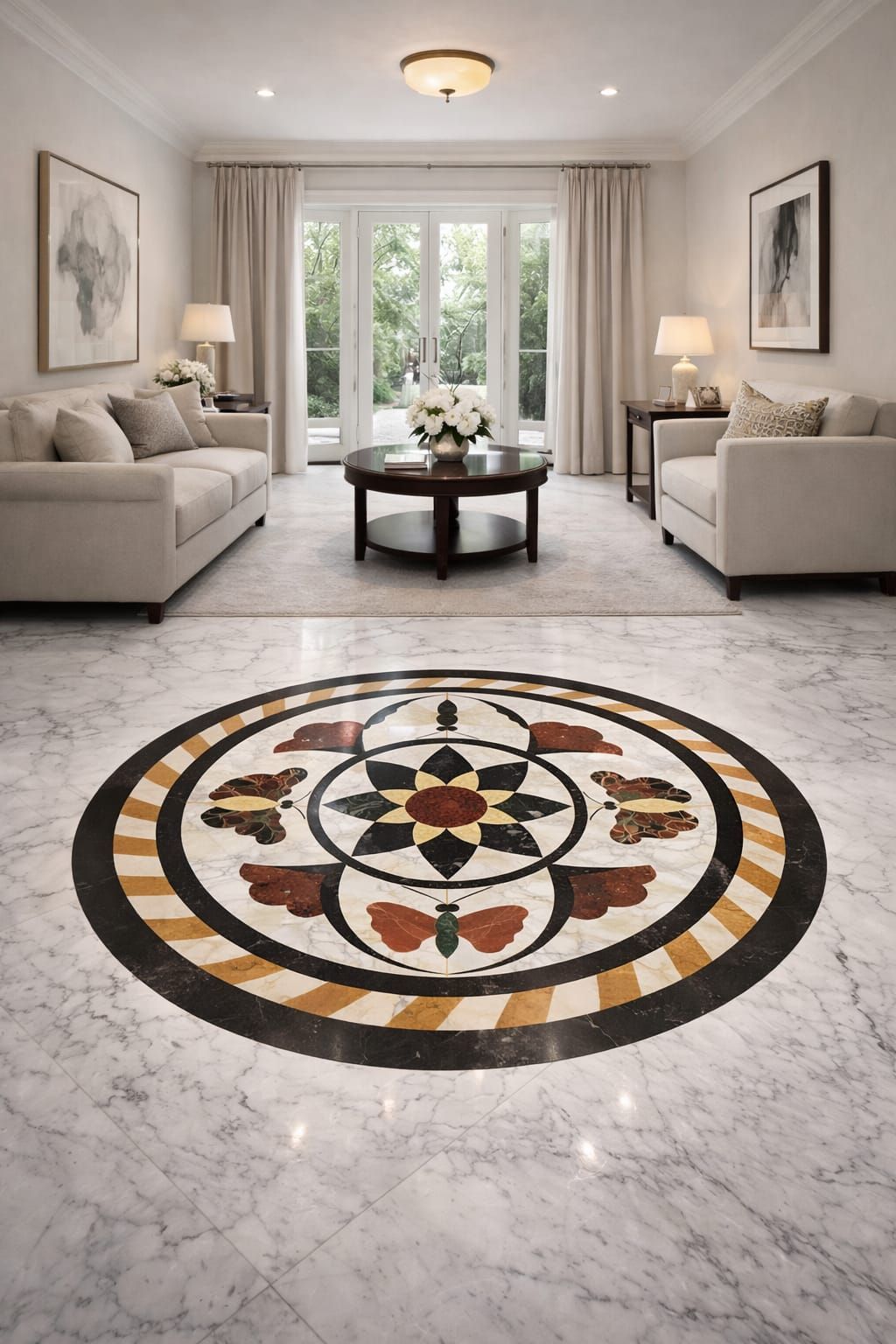 Los rosetones y solados decorativos son elementos elaborados en piedra o materiales naturales que se utilizan para embellecer pisos y espacios arquitectónicos con diseños elegantes y detallados. Los rosetones destacan por sus formas circulares y patrones ornamentales que se colocan como punto central en entradas, salas o patios, mientras que los solados decorativos combinan diferentes piezas, colores y texturas para crear composiciones únicas en el suelo. Estos trabajos aportan distinción, estilo y un acabado artístico a los espacios, convirtiéndose en una opción ideal para quienes buscan un diseño sofisticado y duradero en interiores y exteriores.